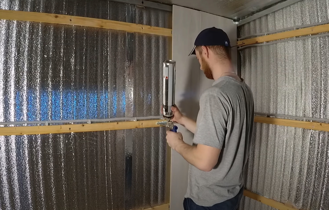 Крепить плиты можно и на монтажную пену. Способ нанесения такой же, как и на жидкие гвозди. Отделку стен плитами можно осуществить быстро и самостоятельно. Главное — рассчитать количество крепежных материалов и плит.