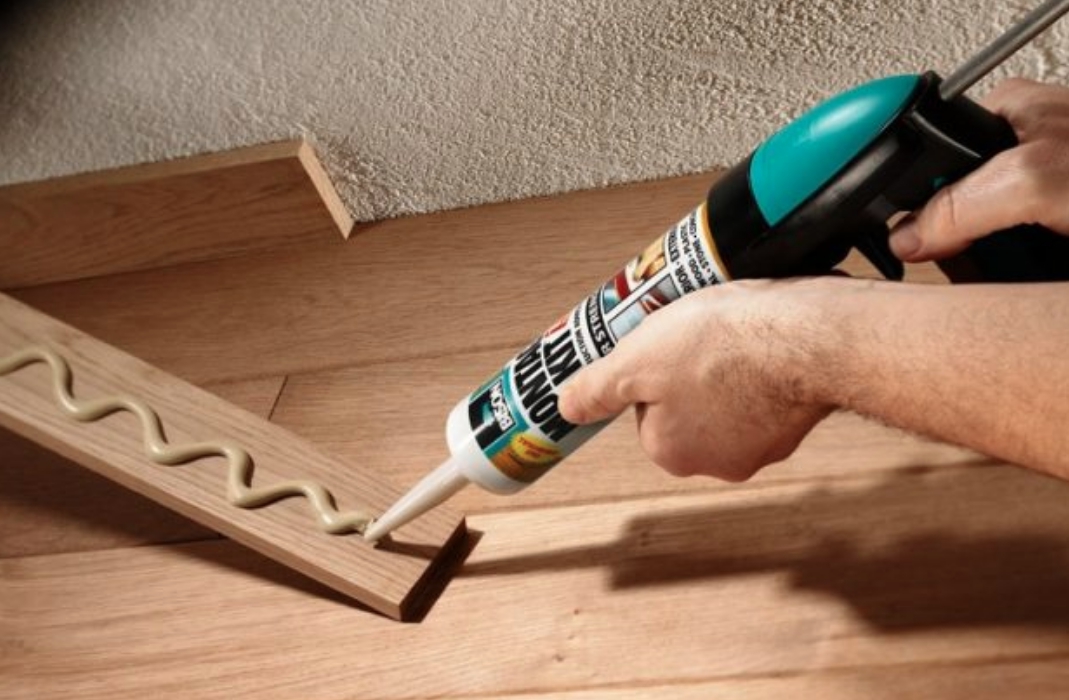 Также отличным способом крепления являются жидкие гвозди, зафиксированные дополнительно с помощью саморезов. Этот способ имеет меньшую стоимость, быструю фиксацию клея на поверхности.