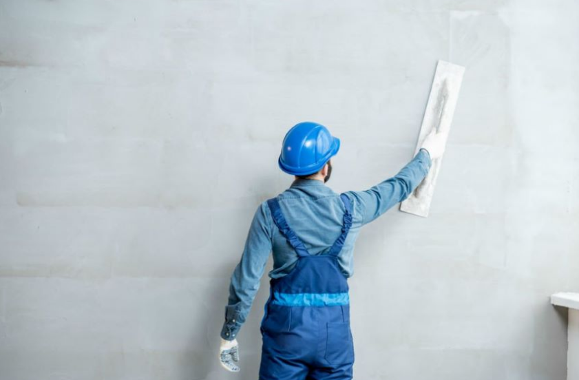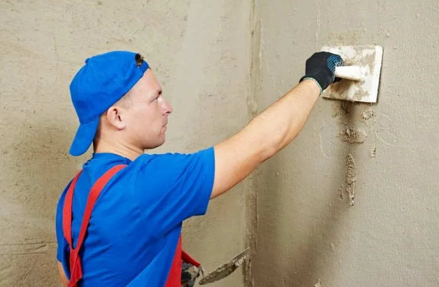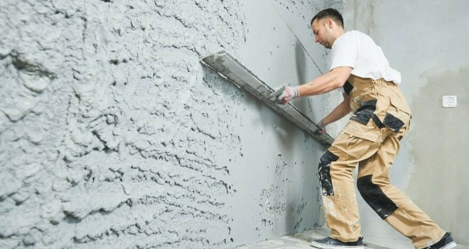 Одним из способов быстро завершить работу с отделкой стены — нанести на грунт штукатурку из гипса и цемента.